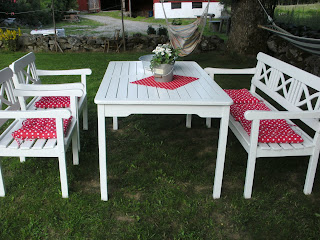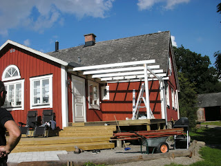 Idag så blir det fortsättningföljer på målning av verandan..snart klar nu ...ska bli så skönt att få den färdig ..vi har letat upp gamla fönster som vi tänkt att ha där ..men de måste också fixas till ..ibland så kan man känna att nytt hade varit mycket enklare ..men det gamla är ju charmigare och mera naturligt ...men visst är det så mycket lättare med nya färdiga material..bara att spika upp....eller att leja bort det ...h.m ..men då pratar vi helt andra priser ....